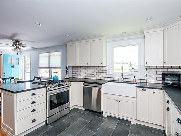This darling ranch with full cedar shake exterior is move-in ready Stunning views from this desired East Woodstock location will quench all your country-living thirst Upon entering this Cape Cod-esque home, you will appreciate the open, airy and peaceful atmosphere. The eat-in kitchen has recently been remodeled with new cabinetry, black matte granite counter tops, white farmhouse style sink, a stunning beveled subway tile backsplash, stainless steel appliances and a natural black slate floor A three-sided, floor to ceiling stone fireplace unites the dining area and living room. From here you are led to three sizable, bright bedrooms and a newly renovated full bathroom. Both the family room and living room open to a generously sized deck just waiting for your next summer soiree And all the windows and both interior and exterior doors have recently been replaced The basement has room for storage, a laundry area and a ½ bath. This lower level space could easily be finished as a bonus room, office, or possibly an in-law. Several gardens occupy this beautifully maintained 1.5-acre property. There is plenty of space to play, sharpen your gardening skills or simply enjoy the quiet. Nestled at rear of the premises you will find a 2-stall shed row barn and paddocks which are currently occupied by 2 miniature donkey's, Sophia & Lucia