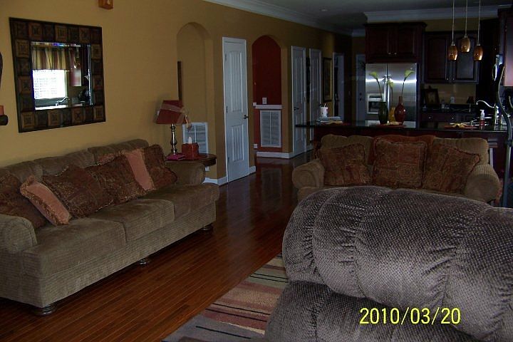 Elegant, Livable, and Beautiful, 2-story brick home with full basement and all the amenities you need. Basement is partially finished (it has been plumbed and wired for kitchen and bathroom. We have framed it for a 2 bedroom, kitchen/living room, closet in the master bedroom with full bathroom. The other portion of the basement is being used for storage, which includes a garage door entrance into the storage area) The main floor of the home has the Master Bedroom with full bathroom, with toilet area closed off with a pocket door and walk-in closet also closed off with a pocket door. The Master Bedroom has vaulted ceilings with French doors that lead onto the front porch and a single, decorative door that leads to the back deck. The extended living room has a set of French doors that lead to the back deck, gas logs, a very open area that joins with the kitchen. The kitchen is spacious with lowered cherry cabinets and granite countertops, which includes a bar area with 4 stools. The end of the house closest to the garage contains the spacious laundry room with extra deep sink, cherry cabinets and counter for clothes folding. Across from the laundry room, which is located at the door leading out into the garage, is the half bath. This exquisite bath has a beautiful bowl sink with cabinet and toilet. The access to outside guests and activities is convenient. Across from the kitchen is the dining room, which is my favorite room in the house. Also located on the main floor is an office with 2 arched doors that lead to the living room and to the foyer. The open foyer area leads out the front elegant door with 2 sidelights and 1 on top. There is an open area upstairs with a focal point window with top arch. There is a small sitting area in the open area upstairs. Each of the three remaining bedrooms are upstairs. One bedroom contains a full bath with extra large closet. The other 2 bedrooms are spacious with large closets. A separate full bath is also upstairs. A HUGE bonus & Storage Room are awesome additions upstairs. Bonus Room is great for family gatherings or kids play. Both sides of the room are wired for tv's and the area of open is amazing and very versatile. The house has 2 heat pumps, also.