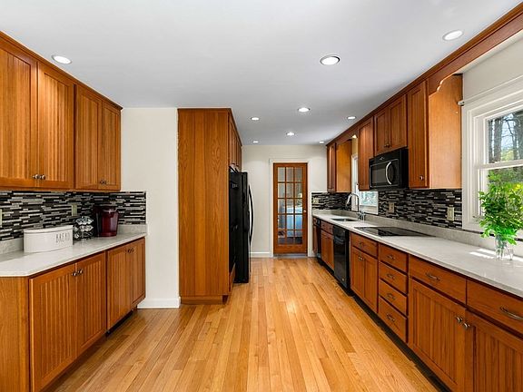 Well maintained colonial home on private ace lot. Sellers have done some nice updates including roof, driveway, kitchen, hardwoods, and lighting. Front entrance farmers porch leads to open concept family room with recessed lights and fireplace, dining room with sliders to deck and updated kitchen with quartz counters, all with hardwood flooring. Kitchen leads to laundry and drop zone with direct garage access, oversized living room/home office with HW flooring and ½ bath. Real first floor bedroom with private updated bath with radiant heat and wet floor/tile shower complete this floor. Second floor has 3 nicely sized rooms all with HW flooring and full bath. One bedroom is front to back with his/her closets! LL is great future potential finished space with brick fireplace. Exterior green space is private including deck, storage shed and flat level green space. 134 Raddin Road, a wonderful place to call home in central Groton location close to high school and conservation.
