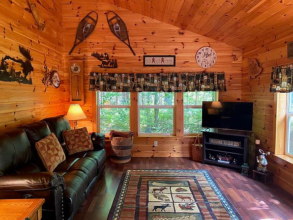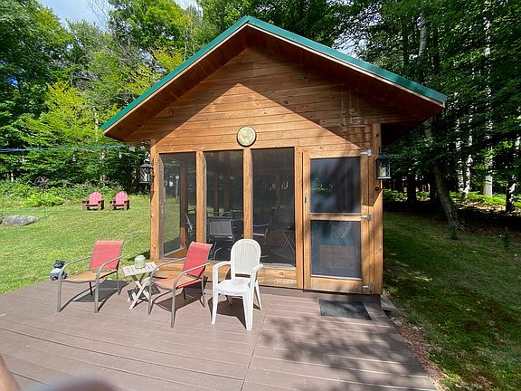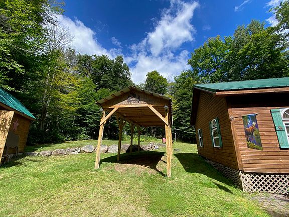 This meticulous, seasonal ranch home with a deeded dock space on the Raquette Lake Outlet is a real find. It is kept in tip top shape. Besides the 2 bedroom, 1 bath, open floor plan, there is a 12 X 12' screened house in the back for entertaining. A screened porch on the front is a perfect place to enjoy the out of doors without the bugs. A 12' X 24' pole barn makes a great storage area for boats or an RV. A pellet stove in the living room provides the heat during the 3 seasons you can use this camp. It has a drilled well, is insulated and has 100 amp electric. Included are most furnishings, appliances, an Artic Cat 4 wheeler which pulls a small trailer with 2 kayaks. The Artic Cat has it's own shed for storage. Best of all, this property has deeded lake rights to an area almost next door with a boat space (dock is included) and a launching area. You have access to Raquette Lake from this drive to location on the North End of the lake.