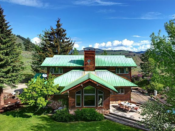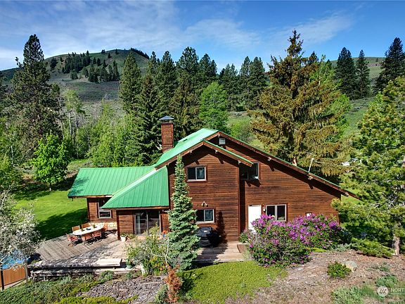 Highly desirable Methow Valley location! 10+ private acres at the end of the road w distinct home. Adj public lands w miles of premier hiking, mountain bike trails & backcountry skiing right out the door! Special habitat w scattered lg pines & aspens overlooking the Chewuch River valley. Primary bdrm w views, ensuite bathrm, walk-in closet. More views from 2 add'l bdrms, 2 baths, office, spacious rec rm. Chef's kitchen, custom cabinets & eating bar. Warm wood trim, expanse of windows & views evokes peace & calm. Storage galore. 2+ car garage w 2nd level storage space. Super insulated & efficient. Includes new propane fireplace insert & new roof. Truly an unforgettable setting only 10 minutes to Winthrop. Includes new roof & heating system.