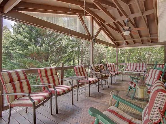 FURNISHED! You?ll experience mtn living at its best in this enchanting seasonal mtn view cottage on 1.04 acres! This uniquely designed home has a long list of comforts beginning w/ a wrap-around deck, large screened in porch, 16x16 detached workshop, 2 car garage, plenty of space for a garden & a lovely creek. Love your fur-babies? There?s a fenced-in yard just for your four-legged family. You?ll also be impressed w/ your expansive interior with open great room, exposed beams & FP, just perfect for entertaining your friends & family. Spacious kitchen features tile counters, plenty of wood cabinets & incredible dining area. Both bedrooms are large with great closet space as well. How about relaxing in the screened-in deck until the sun goes down? Enjoy The Mountain Life at its best at your mountain cottage.