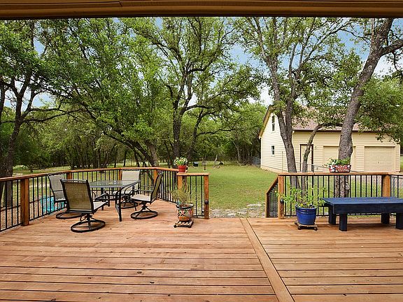 This gorgeous ranch home sitting on 1.15 acres is tucked into a quiet cul-de-sac. The property offers plentiful mature trees that provide a very secluded and private feel while still being conveniently located to the popular Wolf Ranch shopping area. Features include large windows allowing tons of natural sunlight to shine through, wood flooring, skylight in the kitchen, huge double vanity in the master bath, a spacious deck, and detached garage with additional flex space above. Come see and fall in love!