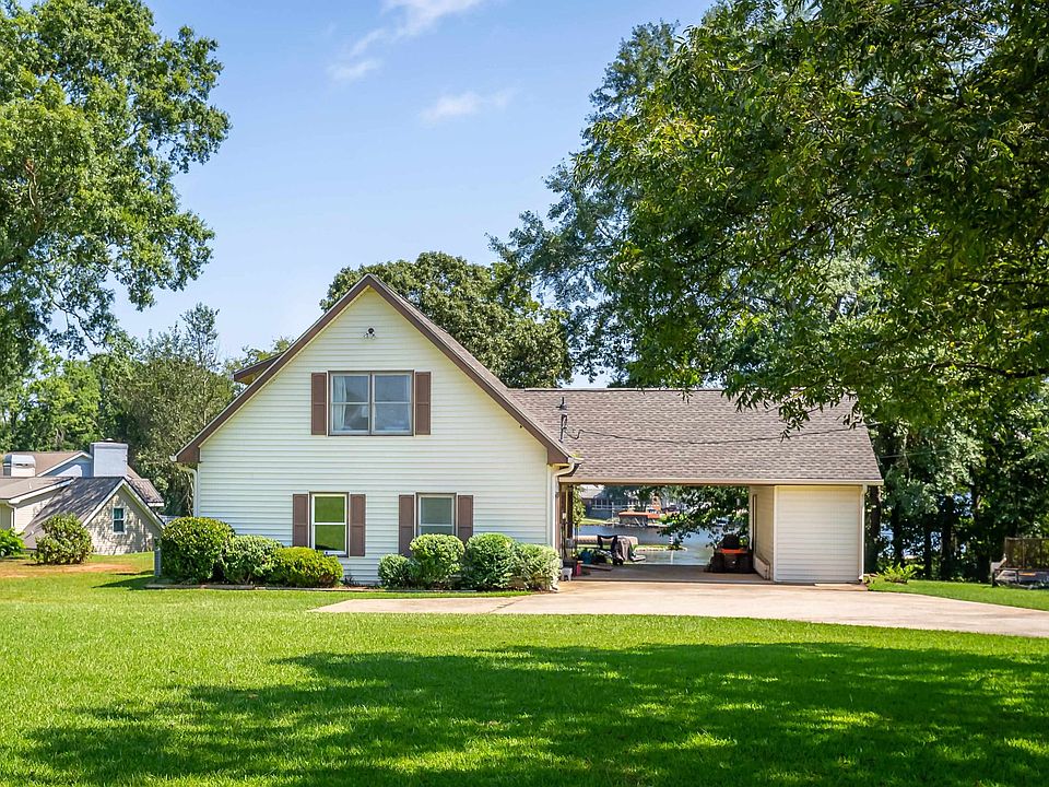 Your own Oasis on Lake Oconee! One of the prettiest lake lots is waiting for you. This 3 Bedroom 2 Bath charmer features owners bedroom plus a secondary bedroom on main level with a huge bath, and a wonderful loft area/bedroom with private bath, up! The great room is open to the dining area and kitchen and features a cozy fireplace. The breezeway or carport is the perfect place to watch the storms roll in and has a constant breeze that will cool you down on those hot summer days. Adjacent to this area is a fabulous storage room to house all the lake toys! Beautiful water, gorgeous views, private cove and a new dock and seawall. The new owners will also have access to a gated boat launch just minutes away. This property with its majestic trees is just minutes from everything and promises many happy memories for years to come!