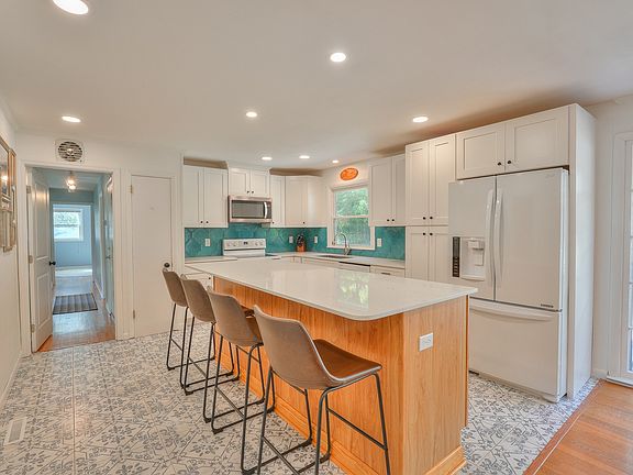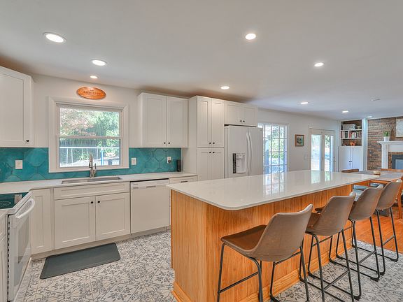 Adventure awaits at this home by the water! Bordering Walton Ferry Boat Ramp Park, you'll be able to explore wooded walking trails, jump off the public boat dock, or carry your kayak down to the lake. Inside, you’ll find a newly-renovated kitchen (2020) w/ quartz countertops, Moroccan tile, and spacious island. The adjacent dining room boasts a large gas fireplace and overlooks a 500+ sqft patio (2021). Originally a ranch-style home, everything you need, including 3 bedrooms, 2 full baths, and laundry are on the 1st floor. The 2nd floor features a massive bonus room, 4th bedroom, full bath, and ample storage. Other benefits include dual-zone HVAC (2nd floor), attached 2.5-car garage, and fruit trees throughout the property (peaches, pears, plums, berries, and more! Also available for rent.