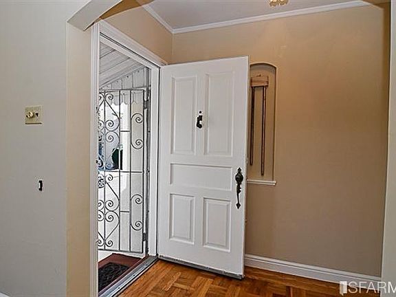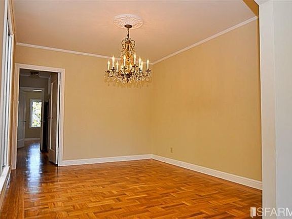 This center patio home has an abundance of natural light and features a spacious living room with an attractive fireplace, crown molding and parquet floors. The formal dining room leads to the updated kitchen with plenty of cabinet space, and a breakfast room. The two spacious bedrooms located at the rear of the home overlook the attractive rear yard. Off the hallway, there is a beautifully remodeled bathroom (stall shower & bathtub). Lower level features a social room with unwarranted kitchenette & full bath. Lots of storage. Lower level is occupied by Seller during the marketing of the home-- the whole property delivered vacant at COE.Home is conveniently located near Muni, shops and BART