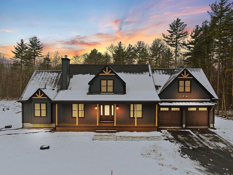 Dreamy, Custom-built Cape-Cod Style home set back from the road on a private retreat lot with the look and feel of a warm inviting mountain home. This home offers a 1st floor Main Bedroom Suite affording you one-level living while offering 4 total bedrooms including a 2nd first floor bedroom or great Home Office. You have 3 full bathrooms with the main level bath including the laundry. At the heart of this home, is the amazing GREAT ROOM with Fireplaced living room leading to the gorgeous custom kitchen & a big Open Floor Plan ready for entertaining. Also, the family room over the garage offers additional living space. Airtight insulation, energy efficient features, Composite Back Deck and covered front farmer's porch. 1.4 miles to Route 140 & 6 miles to Rte 495. Close to area amenities.