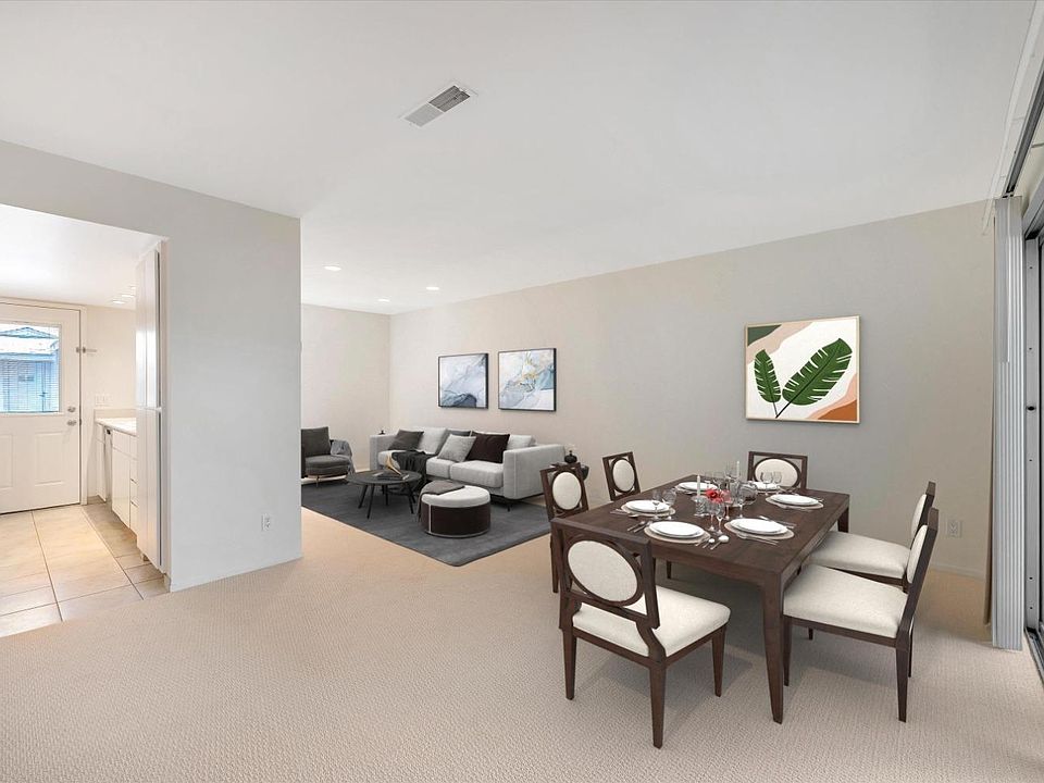 Wow! Great complex, turnkey condition and a great location highlight this well located two bedroom, 1.5 bath two-story townhouse. A spacious, light filled living room and adjoining dining room access the kitchen with newer appliances. Fresh paint and new carpets, half bath, recessed lighting and a convenient patio for morning coffee or bar-b-qued dinner complete the first floor. The two spacious bedrooms and tiled full bath are upstairs. The well run homeowners' association recently completed the renovation of the pool and club house and also a new Patio fence. The new carport is almost finished. Award winning schools are nearby as well as restaurants, shopping and freeway access. Priced to appeal to the most discriminating of buyers or investors, better hurry ! 3 pictures in gallery virtually staged.