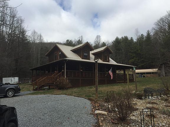 This Tennessee Log Home on 9 acres has lots of extra features inside and out. Hand Hewn Logs with Dove Tail Corners, 1296 square feet of wrap around Rocking Chair porch with views of Iron Mt and the Appalachian Trail, The minute you walk in it has the feel of home, from the Red Oak flooring to the Pine vaulted ceiling with exposed beam and rafters, Cozy Buck wood stove. Approximately 1.5 acres cleared with the rest mostly in hardwoods, Deer and Turkey seen regularly. 100 yard shooting range, 24X40 Block Building insulated that's been used for amo reloading Man's cave. This property joins the United States Forestry on two sides and gives you complete privacy. recently paved County maintained road that leads to property, Large shed built for Travel Trailor which has newer septic system, Electric and water, close to Great Trout Fishing. This property can make your Dreams Come True