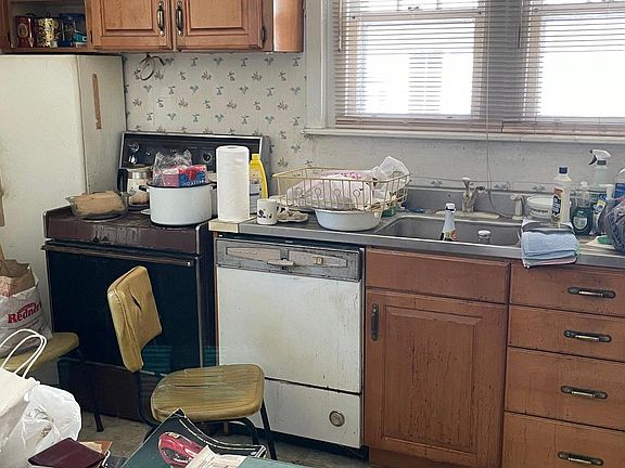 Diamond in the rough with FANTASTIC potential being sold in AS-IS condition. Good bones, great light. Large 0.38 acre lot with Colonial-style brick house in dire need of clean-out and rehab. Searching for a buyer who knows that sweat equity and an ability to look beyond the "stuff" will transform this house into a home. What you are getting: Three bedrooms, 2 baths. Three floors of living with a semi-finished walk-up attic. Property also has a VERY LARGE garage with walk-up to 2nd and 3rd floors of storage. Lots of storage. Lots of things currently stored. Backyard includes large driveway and brick storage shed, currently boarded up. That said, property is being sold in AS-IS condition. Buyer will be responsible for ALL personal property left in the house, garage and storage shed. Seller will not pay for any repairs, cleanout or inspections.