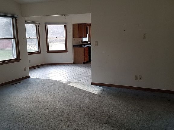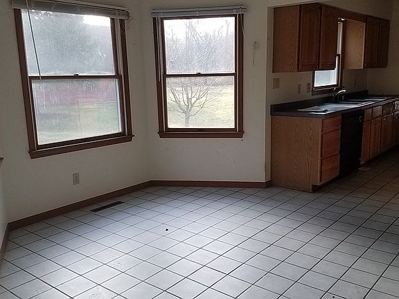 Custom built home with attached garage plus a detached garage with potential for more living space. Large living room with cathedral ceiling and fireplace open to dining area and kitchen. Master suite plus two more bedrooms and full bath plus a large sunroom! Private setting just east of town. All room sizes and sq. footage are approximate