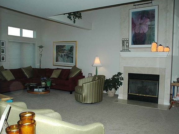 Immaculate condo offering a fabulous open floor plan including large living room with gas fireplace with marble surround and vaulted ceiling and open to the 2nd floor loft. Dining room with window seat and double pilars. beautiful kitchen with granite counters, stainless appliances and hardwood floors. First floor bedroom or den and laundry. Spacious MBR suite with bath. Partially finished bsmt with bedroom, full bath and rec-room.