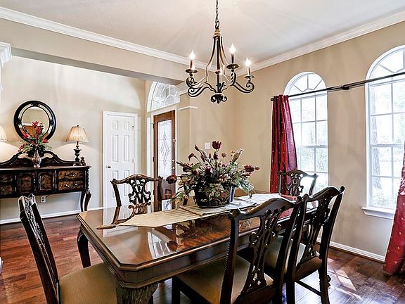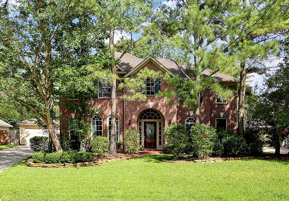 NO FLOOD DAMAGE! Gorgeous home in Alden Bridge w/5 bedrooms,3.5 baths. 2 story entry features hand-scraped hardwood floors that continue throughout dining room & family room. Kitchen features granite,stainless appliances,built in desk & breakfast room. 2 story family room w/gaslog fireplace & built ins. Master suite on 1st floor w/jetted tub,separate shower & walk in closet. Gameroom upstairs. Oversized Garage, Raised wood deck in backyard. Mature trees & landscaping.