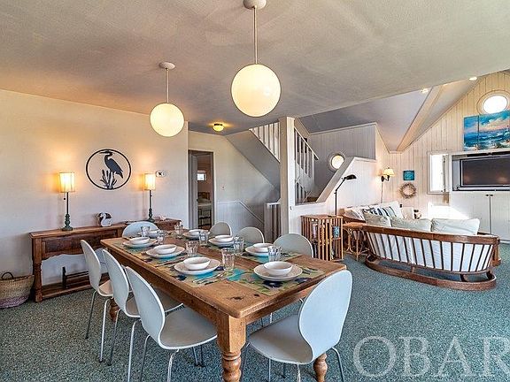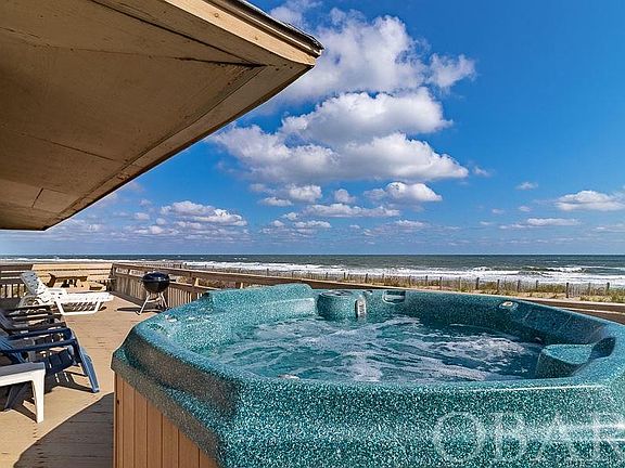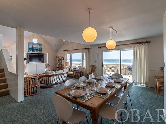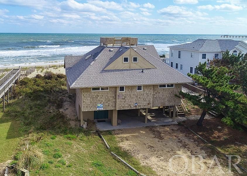 Very quaint oceanfront cottage in the heart of Duck. Fishnet combines old world charm with present day upgrades. The home was originally built with extra long, round pilings sunk into the bedrock, so the foundation is strong. Inside, you will find a spacious living area with endless views of the ocean. New wood flooring on this level brings a fresh look to this lovely cottage. The ample kitchen has all the needed appliances and storage to make your guests comfortable. There are 3 bedrooms on this level including a king bedroom and pyramid bunk-room. Upstairs is a master en-suite with tiled shower and custom (and separate) vanities. This private space also includes an East facing patio to enjoy a morning coffee or watch the dolphin play in the waves. A secret hatch leads to the roof top crows nest, offering some of the best views on the Atlantic seaboard. The exterior of the house has just been repainted and new stairs have been added. The Snow Geese South subdivision consists of just one road, so the beaches are never overpopulated. The subdivision also offers Sound access for crabbing of kayaking. From an investment standpoint, this property generates a strong GRY, bringing in over $100,000/yr. So, sit back in the hot tub and soak your cares away. As they say, the proof is in the pudding...here is what a recent guest had to say: "Finding this home was like discovering that rare diamond. Ocean-front cottages that are cozy and perfect for one family (and their furry kids) are hard to come by! Our family has now stayed at Fishnet for 2 consecutive years and we will return! It's so well cared-for and comfortable, it feels like home instead of a rental property. With white-washed shiplap walls, whimsical mid-century furniture, this home has sophisticated, seaside charm. Climb the ladder to the rooftop Widow's Walk and enjoy panoramic views of the ocean and the sound for an added treat at sunrise or sunset! The recent beach nourishment has fortified the dunes with lots of soft white sand literally one step from Fishnet as the beach access is right next to the home, with no steep stairs to climb from beach to boardwalk. We were so sad to leave and can't wait to go back!"