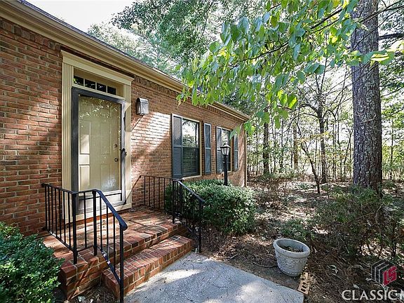Presenting Athens coveted, all-owner-occupied, Drayton Square community. A rare find, this corner lot package is ready to impress! Boasting lush landscaping, mature shade trees, convenient guest parking, and a more private setting, this limited opportunity to occupy a 3 bedroom/ 2 bath, detached end-unit is hard to beat! Boasting a single-level patio home offering a formal concept, this expansive design offers one of the larger footprints available in the community. This gracious plan is adorned with multiple windows providing ample natural light throughout, boasts hardwood and carpet flooring, decorative light fixtures, and custom built-ins. Upon entry you are received by the oversized living room. Ideal for entertaining, this grand living space hosts a masonry fireplace flanked by custom built-ins, and is adorned with custom focus lighting to highlight your favorite art piece. Dinner parties are made easy with the spacious dining room that could easily seat 6+. Double French doors from the dining room access the jewel of this home, the oversized sunroom. With 180 degrees of windows and a custom, built-in entertainment center, this magnificent living area is ideal for hosting game day gatherings or simply relaxing with a good book. Spanning the rear of the home, the sunroom is large enough to lend space to allow for a breakfast area as well. The updated kitchen also accesses both the dining and sunroom, allowing for easy serving and interacting with your guest. Airy and bright, the updated kitchen features an abundance of white custom cabinetry including extra pantry cabinets, sparkling granite counters, tile backsplash and a complete stainless appliance package including refrigerator. The bedrooms and baths can be found grouped together down the left hall including the owners suite. Quite oversized, this grand retreat provides plenty of space for large furniture or a sitting area, and comes complete with multiple closets, plus a private full bath. Each of the accessory bedrooms host plush carpet flooring, ceiling fan light fixtures, ample closet space, and quick access to the hall bath. Well planned, these units were designed to enjoy the outdoors with private courtyard living. Just off the sunroom you can access the brick-encompassed, courtyard patio boasting true privacy. Due to this units location, there is a quaint side yard to relish even more outdoor living. Additionally this home boasts a new water heater, newer interior paint, and a rear 2-car carport. Completing this total package is the extensive amenities. Enjoy a game of tennis or pickle ball on the tennis courts, a cool dip in the pool during the Summer months, convenient trash pickup, lawn maintenance and more. Centrally located in East Athens, and within 6 minutes to UGA, this home's convenience to everything you need adds to its ultimate desirability.