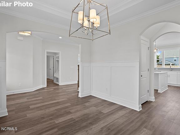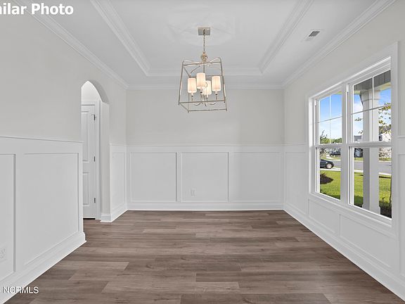 Welcome to Magnolia Reserve and the Cedar by American Homesmith. This beauty is a 4 bedroom 2.5 bath home! The covered front porch welcomes you in to a traditional foyer and a charming dining room customized just wonderfully with arch and other lovely detail. The kitchen is large and convenient with an island that will meet all your cooking needs, QUARTZ countertops, and an extended space for a breakfast area. The living room boasts a gorgeous custom ceiling and cozy fireplace. On the 2nd floor you will find all of the bedrooms. The primary suite has a tray ceiling, dual sink vanity, an oversized FULLY TILED shower, a linen closet, and one of the largest walk in closets you've ever seen! The other 3 bedrooms share another full bath and the laundry room is conveniently placed right in the middle of all the rooms. From outside to inside and situated in this great new development, this home is the one you've been waiting for! Magnolia Reserve is a gorgeous neighborhood in the Surf City/Hampstead area with an easy commute to shopping, restaurants, services, and yes! BEACHES! American Homesmith adds all those extra touches you've been looking for so that you can move in and start living that beach life right away. Don't miss out on seeing these elegant homes by this phenomenal builder, make your appointment to be wow'ed today! **Similar Photos, renderings, and cut sheets are representations only. Builder reserves the right to alter floor plan and features. Buyer to verify schools.