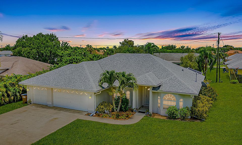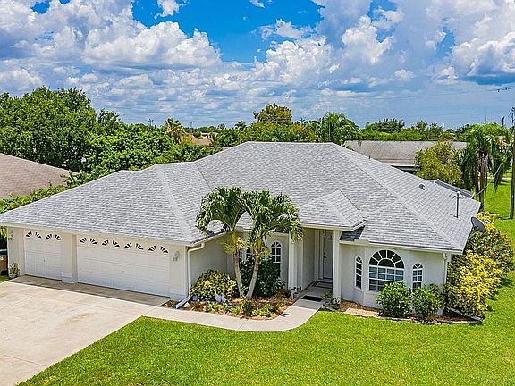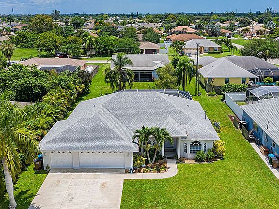 Get ready to enjoy the Florida lifestyle in this fantastic pool home with REAR SOUTHERN EXPOSURE, NEW KITCHEN, TILED LIVING AREAS, 3 CAR GARAGE! 3 bedrooms split plan layout, 2 baths including pool bath, SEPARATE LAUNDRY ROOM. Perfect layout for entertaining friends and family with 2 DOUBLE SLIDERS opening from great room to lanai/pool area. Living areas ALL TILE, HIGH CEILINGS, SUNNY views OF LARGE LANAI AND OVERSIZED POOL. The kitchen is recently updated with WHITE QUARTZ COUNTER TOPS, GREY CABINETS, NEW STAINLESS APPLIANCES, FRENCH DOOR FRIDGE . Semi open kitchen has a breakfast bar and dining area, with french door to lanai, and south facing windows. Spacious master suite leads to bath with double sink vanity and both walk-in shower, separate luxurious tub. This home is well maintained inside and out. Only 1 owner who built the home to live in! The lawn is thick, healthy sod. New roof in 2014, New AC in 2016, home is re-plumbed, ALL UTILITY ASSESSMENTS IN AND PAID, NO FLOOD ZONE X500 ! Located in a lovely, secluded neighborhood, yet conveniently close to Cape Coral, shopping, restaurants, nightlife, bridges to Fort Myers. Private virtual showing available upon request.