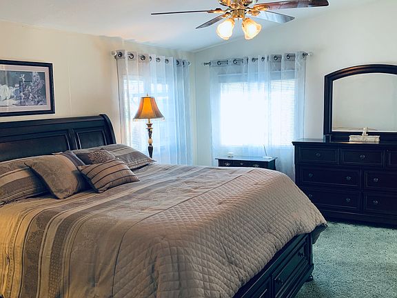 Absolutely great senior park, beautiful yard and exceptionally nice home. Just enough gardening, flowers and trees to be fun and not work! Romantic, private covered patio, extra deep carport, and lockable shed. You''ll love the feel of this home, tastefully decorated and move in ready. Four bedrooms? That''s right and still with a large kitchen, living AND family room. Beautiful senior park, convenient location. Act quick. Beautiful dog paths, country side surrounding the park. Space rent fee is $446.00 which includes space rental, water, sewer, and trash.