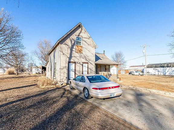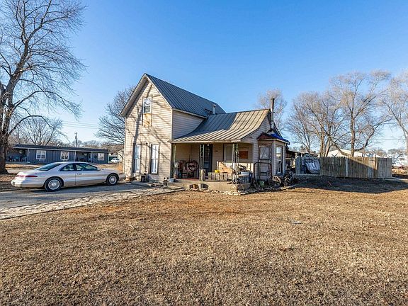 Three bedroom one bath, nice sized corner lot. Detached garage. Wood stove heat. Convenient to downtown. Newer water lines and new sewer lines. Separate dining room. Large yard has plenty of room for vegetable or flower gardens. Round wood fenced area. Come take a look what this home and community has to offer. The town has walking trails and parks to explore. Taxes, measurements, sq ftg. estimated and approx.