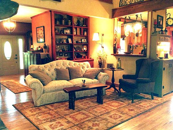 So many custom features!Chestnut built-ins,blacksmith forged ironwork,venetian plaster walls,extensive native lanscaping with trails.Additional family space in sunroom and loft area.Open gr.rm with cathredral ceilings,mst.on main,open kitchen to dining area,lots of deck(covered and open)Sale also includes an additional one acre lot with pond, that could be sold off with entry from Bowery Rd.Great two car garage that also has extra storage space. A wood shop is also included on the property. Super high-end neighborhood.Super buy!4 minutes to main st!