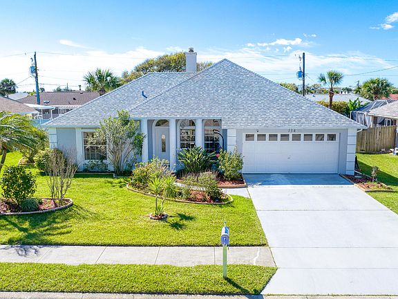 Fantastic home on one of the most coveted streets in Ormond by the Sea. This 3 bedroom 2 bath salt-water pool home is nestled between the intracoastal and the no-drive beach on Sandpiper Ridge Drive. With wide sidewalks, well kept homes and whimsical mailboxes, this neighborhood proudly displays community pride. Improvements to this home within the past year include: fresh paint, 16'' x 36'' porcelain tile floors throughout, new countertops, kitchen appliances, water treatment system, new bathroom fixtures, a redesigned primary ensuite with quartz countertops and dual vanities, and modern lighting in every room. Enjoy a swim in your solar heated pool or refreshing outdoor shower from the privacy of the newly landscaped and vinyl fenced-in backyard. Short walk to popular beach-view dining. Additional features include a newer roof, cathedral ceiling in primary suite, glass shower enclosures, tiled front patio, indoor laundry room, oversized two car garage, new landscape lighting and city sewer!