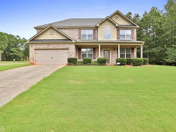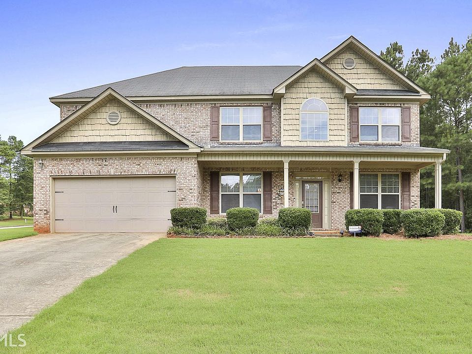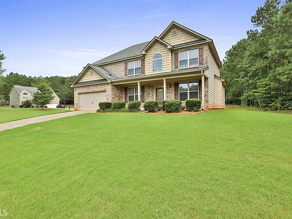 Great value in Newnan, with room to grow both inside and out. It all starts with classic good looks, featuring a tumbled brick front and concrete siding for great energy and sound insulation. The corner, 1.6 acre lot is nicely level in back and has a gentle slope in front--enough that water will drain away from the house but not so much that you'll get a workout walking to the mailbox. Guests will be greeted with a casual front porch outside and a 2 story foyer on the inside. A formal dining room on the left and a formal living room (most people are using this as a great home office these days) is on the right as you walk in. There is a step down family room that has a complete open line of sight to the eat in kitchen. The family room fireplace has a stunning raised hearth and mantle and you'll want to cozy up in the cooler days of late fall and winter with a nice fire crackling away. Stainless appliances in the kitchen and an island make meal preparation a cinch. There's even a bedroom and bathroom on the main level that will easily accommodate guests and family members who prefer not to tackle the stairs on a daily basis. The master suite is GINORMOUS (hey, we think that's the right word to use, since "large" just doesn't cut it), and has trey ceilings in the main part of the bedroom as well as the attached sitting room. If you don't want the sitting room for reading and relaxing, we've seen homeowners use this as an office, a workout room, and even a nursery, and this area is certainly amply sized to fill any of those roles easily. Double sink vanity and garden tub in the master bath. Both secondary bedrooms upstairs feature cool ceiling treatments. Large loft area on the landing outside the laundry and master suite is a great area for homework or crafts. Oh, and the laundry room? It's big enough to put your large washers and dryers and still have space to fold and hang clothes when they're done. The paint and flooring colors in this home are clean and neutral and waiting for you to add whatever style you want. It will be easy for you to see yourself at home here.