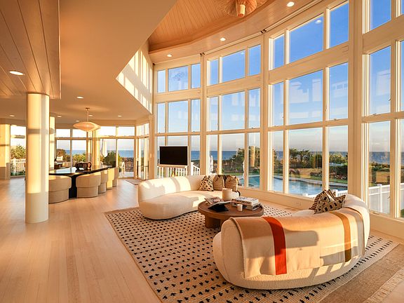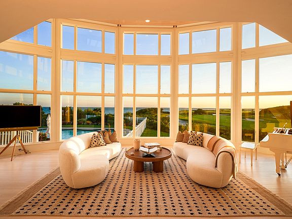 Discover resort living at its finest at this newly redesigned beachfront estate located steps from everything New Seabury has to offer. Sitting atop a picturesque bluff that offers breathtaking vistas of Nantucket Sound and the Ocean Course at New Seabury, this stunning coastal retreat has been transformed by the creative vision of Studio H Design Group, featuring impeccable craftsmanship and premium finishes throughout. The five-bedroom residence boasts an open floor plan with soaring walls of glass that frame panoramic views of the stunning backdrop. From the expansive seaside terrace and pool area, a private staircase leads to the sandy beach below. Additional highlights include a fully finished basement and a separate garage/carriage house with a guest suite and kitchen. Located minutes from New Seabury's five-star resort amenities and everything the area has to offer.