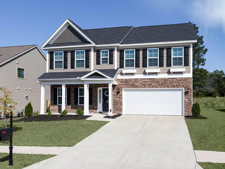 134 Silverbell Ln. is a 2,394 Sq. Ft, 5 bed, 2.5 bath home located in Baneberry Place and zoned for not only Lex 1 schools but the new elementary school, Deerfield. It is a Mungo, Hausmart, home (energy efficient). The kitchen, great room, dining area, 5th bedroom and half bath are on the main level boasting 9ft ceilings and hardwood floors, plus Mungo's hideaway "valet" cabinet. The kitchen features an extra large island with storage on both sides, a bar, a music port with built in speakers, & ample storage & counter space. The great room features a fireplace w/pre-wired entertainment connection, to mount a TV. The 5th bedroom could function as an office, too. The Master bedroom, laundry room, full bathroom and 3 additional bedrooms are located on the 2nd floor. The Master bedroom is spacious, featuring a sitting area, large walk-in closet and a private bathroom. The master bathroom has a large double vanity with ample storage, 3 linen closets and a private water closet. The 3 additional bedrooms are spacious and have walk-in closets. The full bathroom upstairs has a shower/tub combo & a double vanity with storage. There is a private mound with trees that adds privacy to the backyard, you are not looking directly into someone else's backyard. This home is move in ready with the majority of the house painted in neutral colors and no need to patch walls from previous owners pictures.
