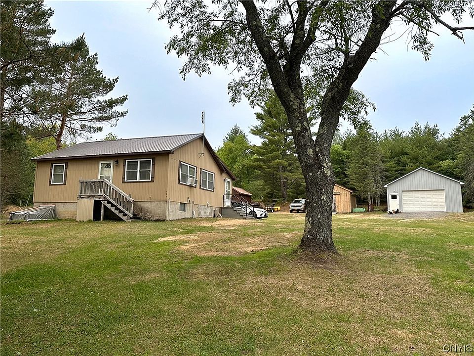 Built in 2012, this 2BR, 1BA, 768sf, ranch home will cater to your desires for woods-type living, recreational activities, and ample space for storage. Extremely well maintained, this home offers a cozy retreat for those seeking a weekend escape, an Airbnb investment opportunity, or a peaceful year-round residence. There is a full, dry basement w/interior and bilco door access. Home is wired for a fully functioning generac backup generator. Oil heat, drilled well and septic. You'll find three spacious outbuildings perfect for storing outdoor equipment, vehicles, and tools. The main garage is 24’ x 32’ x10’ with a 14’ x 8' overhead door & a wall mount LiftMaster lift, plus it’s heated! The other sheds are 16’ x 16’ and 10’ x 14’ both with electric! Flexibility to pursue your hobbies and store your prized possessions. There is room to expand here! The lot in front of the home could be used as an additional building lot w/a well already in place. Ideally located near Hinckley Reservoir for all your favorite water activities & access to snowmobile and ATV trails!