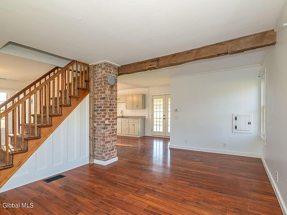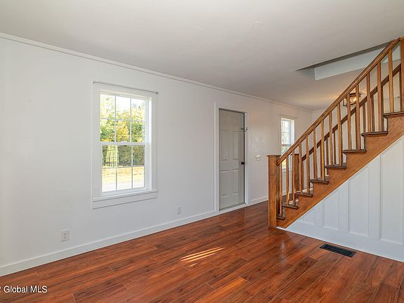 Potential gentleman's farm on a quiet country road. House has been professionally renovated including new appliances. Old dairy barn with large hay mow, ideal for farm animals. No visible neighbors. Short drive to village and NYS Thruway.