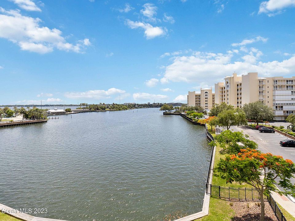 Incredible views and sunsets overlooking the Intracoastal Waterway await you from this 3rd floor 3 Bed / 3 Bath End Unit. Sliders with stylish plantation shutters open to the wrap around balcony. Windows are high impact and balconies have electric storm shutters. Newer kitchen appliances compliment granite countertops, kitchen island, walk-in pantry and wood cabinets. Master bathroom has a separate shower, jetted tub and his / her sinks. All 3 bedrooms have en-suite baths. Enjoy resort style living at it's best! Enjoy the clubhouse with gym, sauna, 2 pools, hot tub, basketball and tennis courts. Directly across the bridge to Historic Cocoa Village you'll experience great shopping, restaurants, entertainment and more. It's a short drive to Merritt Square Mall, 15 minutes to World Famous Cocoa Beach. Enjoy entertainment at Port Canaveral where you can watch cruise ships and fishing boast come and go, and the occasional Solid Rocket Booster returning after a launch. Easy commute to KSC, 40 Minutes to Orlando Int. Airport, 50 Minutes to Orlando, 70 Minutes from the Orlando attractions.