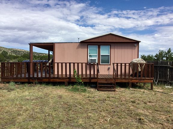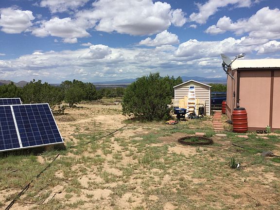 Single wide with an addition, sited on a Juniper studded, mountain view acres. The power is provided 16 solar panels, which are sent to a battery storage to run the well and power for the home. The well is a good well for the area and has a 1000 gallon storage tank. the septic has been recertified.