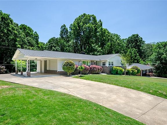 LOCATION and VALUE! This three bedroom, two bath ranch home sits proudly atop of Tanglewood Drive! Fantastic floor plan and so much storage! Enter through the front door to be greeted by hardwood flooring and fresh neutral paint colors in the formal living room. Beautiful built-in cabinets tucked over by a nestled reading/office area. The hardwoods extend throughout all living spaces and bedrooms! Large bright dining room with built-ins and wood burning fireplace conveniently open to the kitchen which features open bar-top seating, granite tops, plenty of cabinets and all kitchen appliances shall remain. HUGE laundry room just next to the kitchen with continued storage abilities! Three bedrooms and two baths down the hardwood floor hallway. Guest bath features linen storage, a tub/shower combo, tile flooring and a large vanity! Far right back bedroom could be your master as it includes it's own bathroom featuring a shower stall and pedestal sink. Attached covered carport with side-entry access to the home. Large back patio and wooded backyard! Additional storage or workshop capabilities with double outbuildings. Beautifully maintained landscaped yard. Zoned for Concord, McCants Middle and TL Hanna High Schools. Super close to shopping, dining and parks!