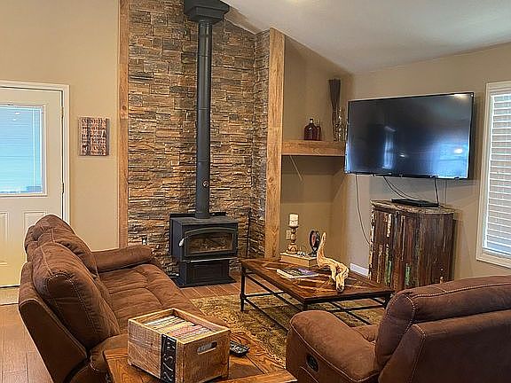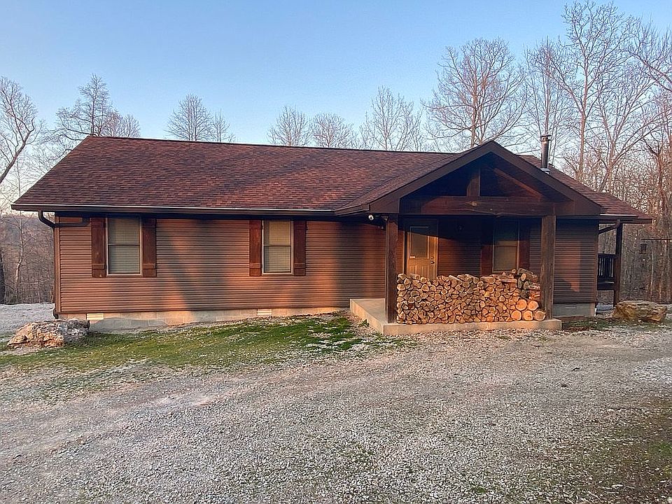 Cozy home in the Ozarks between the White River and Bull Shoals Lake. Lots of outdoor living space with two covered decks, one covered porch and one large patio with hot tub. Vaulted ceilings in den/kitchen with wood beam accent. Granite countertops throughout. Gas cooktop with stainless steel appliances. Antique oak wood tile. Custom bathrooms with large, marble stone walk in shower in master and gorgeous tile like, low maintenance, acrylic wall surround in 2nd bath. Large walk in pantry with oversized closets in each bedroom. Wood burning stove that's capable of heating entire house. Lots of space for parking and entertaining. Large slab poured for future shop building.