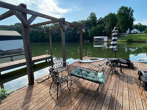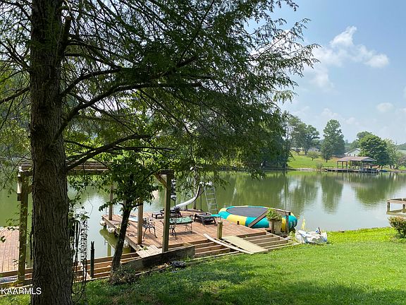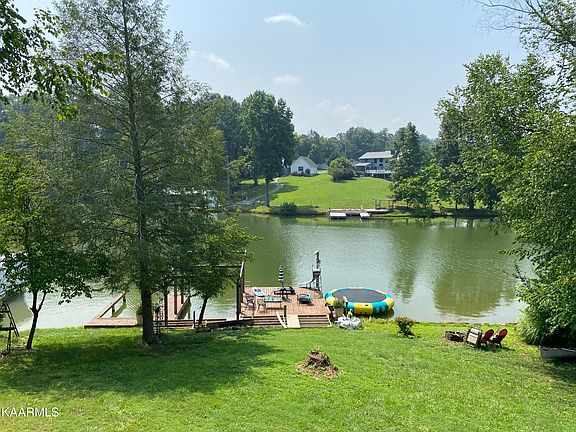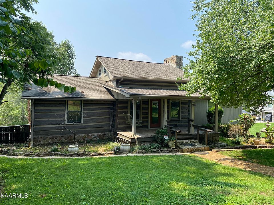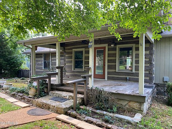 This unique lakefront home on beautiful Tellico Lake combines history with rare features indoor and out, including 96 feet of shoreline on a deep-water cove. The original home was built with historic hand-hewn logs from two Coker Creek cabins for an authentic cabin feel. As you enter the home, a large stone fireplace greets you before you walk through the eat-in kitchen and out onto your deck that overlooks the lake. The spacious addition, built only a few years later, includes a living room with vaulted ceiling and built-in entertainment center, and a dining or reading nook with wall-to-wall windows for you to enjoy stunning lake views. Flex spaces downstairs could be used as extra den, expansive dressing room, or additional storage. Gorgeous stone arches draped in grape vines open up to an easy slope down to the lake and your large dock. There is also a detached 4-car garage with small hair salon that could be converted to an office or man cave. This property is one-of-a-kind and is ready for your personal touches. No one on the lake will have a home like yours!