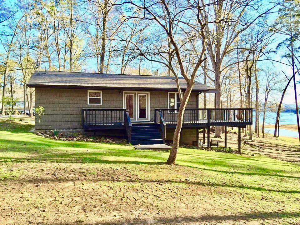 Adorable lakefront* cabin!!! Located back in a cove, the home has a private TVA approved 12x24 dock. This cabin is ready to move into as a full time, part time, vacation home or it could potentially be used as a vacation rental home. At the end of the road is a private (neighborhood property owners only) boat launch. . The basement could be finished for additional living area or left as is for storage of lawn mower, seasonal gear, boating equipment or tools. Additional lot is included in the sale and offers opportunity to expand or build a garage. Garden shed is also included.*Water is seasonal