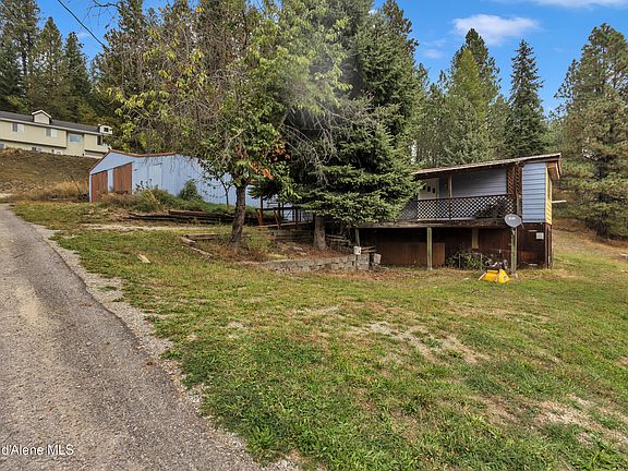 Valleyview Ranch double lot with peaceful views, 2 bed/1 bath older singlewide with covered front & back porch, some updates, pellet stove & detached shop-garage w/storage room. Mobile sits on a basement foundation used for additional storage. Garden area, chicken coop, valley & mountain views, close to CDA River & unlimited recreating. Nice property for those who love the outdoors!