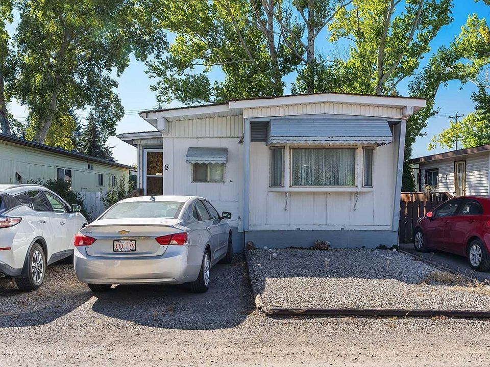 Nestled in the community of Westpark Village you will find this cute right sized mobile home for those looking to downsize or start fresh. A wonderful enclosed porch is great for storage and keeping your coats and boots. There is plenty of space in the entrance so clutter is not an issue. Newer kitchen cabinets in soft white, upgraded tile backsplash in modern colors and white appliances grace the step saving kitchen. There is a double sink for wash up and a window that looks to the west side of the yard. A very spacious living room offers a place to relax and a place to keep a small office area as well. Larger windows face out to capture the daylight keeping it nice and bright inside. A newer furnace will keep you toasty in the winter months. The laundry and bathroom are shared and a newer side by side laundry pair are staying for you to enjoy. A tub/shower combination, a sink with a vanity for storage create a great four piece bath. At the end of hall is the primary suite with large venting windows looking to the rear yard. The second bedroom is closer to the kitchen and is large enough for a double bed to fit comfortably. Enjoy the peace and quite of this tranquil location found within walking distance to all amenities in Strathmore. The pad rent covers water, waste and garbage. Great neighbors on all sides are ready to welcome a new resident.