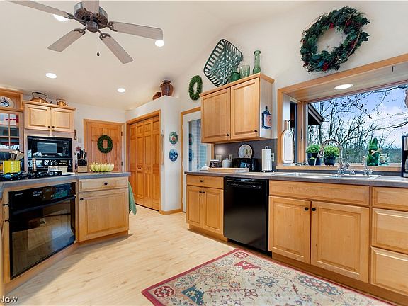 Located in the heart of Mineva, this custom built ranch style home sits high on the hill with extraordinary views of the country side! Spacious gourmet kitchen with vaulted ceilings, skylights, center island, breakfast bar, dinette area and large expansive windows that allow for enjoyment of the views. Substantial living room with vaulted beamed ceilings with brick fireplace and slider doors leading to wood deck overlooking Minerva. This quality built home offers over 2500 sq ft of living space on first floor, 3 bedrooms, 2 full bathrooms, large foyer area with floor to ceiling windows and slate flooring, attached 2 car garage with seperate pantry area for additional storage. Full walkout basement is partially finished with rec. room offering large sliding doors to exterior, full bathroom, bedroom area, wood working room with private entrance and large areas for storage. As the photos indicate, this home is in move in condition and has been nicely updated and remodeled to high standards. LA agent related.