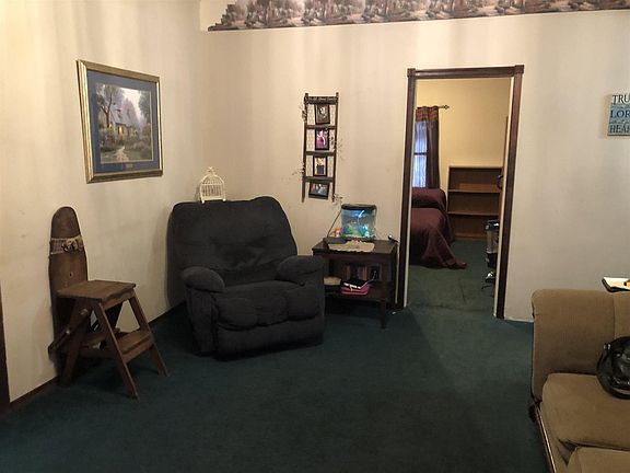 Upstairs has no heat source, well is shared with neighbor to the West, would need some repairs to qualify for USDA, FHA Financing. Main level bedroom doesn't have a closet