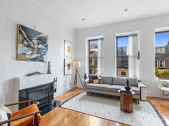 This stunning triplex penthouse offers a lovely living space with three oversized windows. The 9.6-foot ceilings, fireplace, exposed brick, and open kitchen lend an old-world ambiance and comfort that only a home of this vintage could offer.