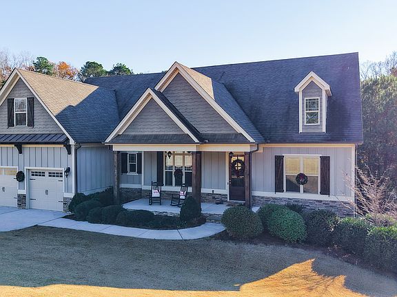 Enjoy lakeside living at its finest in this stunning 5 bedroom, 4-bath home! Step inside to a wonderful open floor plan inviting you to unwind & relax while enjoying all that this home has to offer. Featuring gleaming hardwood floors, designer lighting and abundant natural light throughout. The custom chef's kitchen impresses with high-end cabinetry, an oversized island, custom built in buffet - perfect for entertaining, stainless steel appliances, beautiful quartz countertops, coffee nook, walk-in pantry, and a bright breakfast room-all open to the inviting family room with built-ins, a stone fireplace with gas starter. Just off the family room, an inviting covered porch with plenty of room with its own fireplace creates the perfect setting for game days or relaxing with a cup of cheer. The main-level owner's suite is gracious in size and features a lovely tray ceiling and a spa-like bath with an oversized tile shower, lots of beautiful cabinetry for storage & linens, with marble countertops, soaking tub, water closet, and spacious walk-in closet. Two additional large bedrooms on the main level share a full bath with tile flooring and a beautifully tiled shower. A well-designed laundry room with utility sink and cabinetry, plus a walk-in pantry, add for storage with convenience. Rear stairs lead to a private upper-level suite complete with a bedroom, full bath, and an office/bonus room-ideal for teens, guests, or multigenerational living. The terrace level is an entertainer's dream, boasting new hardwood flooring, 10-foot ceilings, built in custom bar area with sink & cabinetry ideal for all the drinks & snacks to keep everyone entertained as they enjoy a play area, reading nook, a media/golf simulation room with upgraded shiplap walls-perfect for movie nights or game days. You will also find an additional bedroom and an office/workout room, a full bath, and abundant unfinished storage space ideal for a workshop and truck loads of holiday decor. An oversized patio extends your outdoor living space, and a new fence will be installed soon. Located in Lake Redwine, this home offers resort-style amenities including a 360-acre lake, tennis courts, pool, sidewalks, and streetlights. Zoned for top-rated Brooks, Madras, and Newnan High schools. This exceptional home feels like new, offers upgrades around every corner, plantation shutters and even includes all kitchen & laundry appliances. Be ready to fall in love with the layout, finishes, and lifestyle that await you! A short drive to schools, historic downtown Newnan, shops & I-85. Welcome Home...