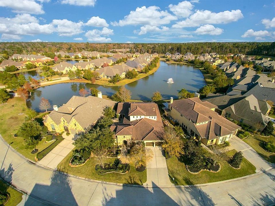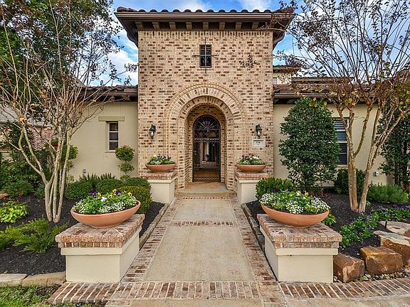 Just wow...this CASITA floor plan by Darling Homes was the former model and rests on one of the best lots in the neighborhood with a full length WATERFRONT view of the pond and fountain. As you enter through the iron gates you see that the house wraps around the private court yard with outdoor fireplace, lush garden, outdoor living room, entrance to the casita and front door. The main house is a show stopper with fine finishes, walls of glass and the best of everything with a touch of glamour. The circular entry, wood flooring, vaulted ceilings, 3 full baths, 2 half baths, open plan, views of lake and courtyard, covered back porch, large rooms, surround sound throughout, game room, media room, poker room, and dream custom closet make this a home that you will love. All bedrooms are on the first level. This stunning home has luxury at every corner and even extends to the epoxy garage floors. Lifetime tile roof roof, pool table, media room furniture and equipment are a bonus.