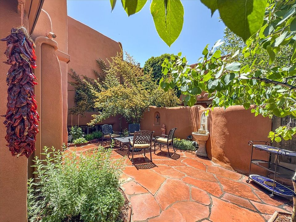 If you're dreaming of classic Santa Fe charm in the heart of it all, this private gem at the end of a cul-de-sac is the one. Nestled in the highly sought-after South Capitol neighborhood, this tri-level condo puts you just moments from the Plaza, Canyon Road, and the bustling Railyard District—home to galleries, restaurants, and the award-winning Santa Fe Farmers Market. Inside, you’ll find timeless Santa Fe style at every turn: beautiful wood and tile floors, warm kiva fireplaces, hand-troweled plaster walls, traditional ceilings, and colorful Mexican tile. Built with true adobe and meticulously maintained by the current owners, this home is the real deal—Santa Fe style inside and out. They're also offering a beautifully curated furniture package, making it easy to step right into the Santa Fe lifestyle, no unpacking required. With two spacious primary suites—one upstairs and one on the lower level with a private sitting area—this home is ideal for couples traveling together or anyone who values flexible living. And can we talk about comfort? With baseboard hot water radiant heat and mini splits for cooling, you'll always be cozy and comfy. The walled courtyard is the perfect spot for a morning coffee, an evening glass of wine, or simply soaking up the Santa Fe sunshine. This property has a successful history as a short-term rental (permit not transferable), and would make a wonderful full-time home or lock-and-leave getaway. One of just four residences in a charming compound, this home sits at the front of the property—giving it the most natural light, the most breathing room, and the feeling of a private retreat right in the heart of town. Best of all? It’s priced under $500 per square foot—an exceptional value this close to the center of town. Don’t miss this rare opportunity to own a piece of Santa Fe magic.