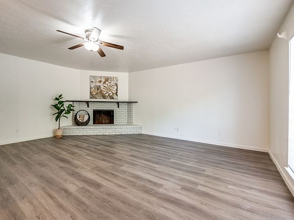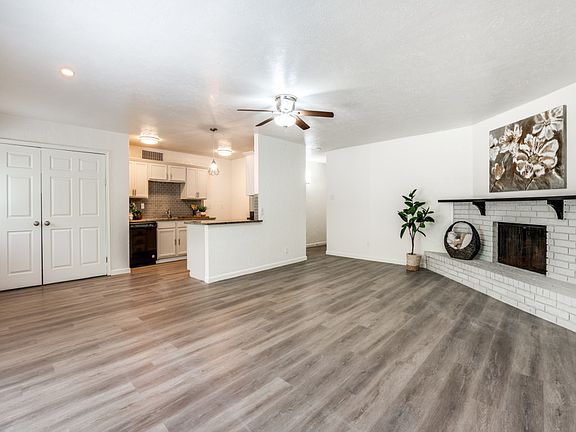 Modern updatesCozy corner brick fireplaceUpdated bathroomsLarge storage closetBackyard viewsBright open layoutPeaceful backyard escape