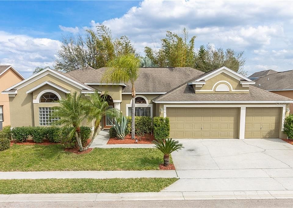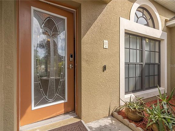 Welcome to tropical Paradise in this PRIVATE POOL&SPA home on the CUL-DE-SAC street in the desirable The Estates at Legacy Park! Sought after SINGLE STORY Jacqueline floor plan is built on the rare 70'wide lot and featuring spacious L-shaped courtyard POOL DECK with EXTENDED COVERED LANAI,BRAND NEW SCREENS (2020) and CUSTOM DESIGNED TROPICAL LANDSCAPING with mature fruit trees!Come inside to appreciate this favored layout with 10'CEILINGS,TALL SLIDING DOORS,beautiful GRAND ARCHWAYS,SPLIT FLOOR PLAN with privacy in mind, SECONDARY SUITE with POOL BATH,upgraded LIGHT FIXTURES,BAY WINDOW overlooking resort style patio setting,designer GLASS FRONT ENTRY DOORS with TOUCH SCREEN LOCK,custom window treatments,tons of NATURAL LIGHT.Quality UPGRADES include:TILE FLOORS in all living areas and 1bedrm,MARBLE in the Den;BRAND NEW CARPET(2020),bathroom exhaust fans with timer switches,INTERCOM and SPEAKERS installed,NEST Thermostat and doorbell camera.Fall in love with expansive fully equipped KITCHEN featuring upgraded AUXILIARY KITCHEN EXHAUST FAN for pleasant cooking experience,newer UPGRADED APPLIANCES,ample counter-top and storage space,LARGE ISLAND,breakfast bar,a closet pantry,42" upper CABINETS, POT RACK LIGHT,BUILT IN DESK and BREAKFAST NOOK opening up into bright and cozy family room.PRIVATE DELUXE MASTER SUITE;large BATHROOM with GARDEN TUB,stand up SHOWER,DUAL SINKS and 3 separate closets including LARGE WALK IN!LAUNDRY ROOM with built in base cabinets and utility sink;3-CAR GARAGE,PAVED AREA in the rear.