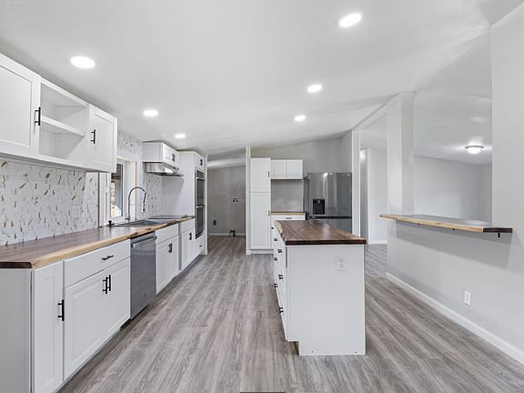 Back on the market with some recent updates. This home is move-in ready and sits on a spacious, fully fenced corner lot—perfect for extra parking, projects, or enjoying the outdoors. A large covered front deck welcomes you and offers the perfect spot to relax or entertain. Inside, you'll find a bright and open floor plan featuring a generous entry foyer and a well-appointed kitchen with a double oven, double island, and stylish new tile backsplash. Although this home is move in ready there are some minor cosmetic updates needed that provide opportunity for personal touch and sweat equity. With ample indoor and outdoor space, this property combines comfort, functionality, and charm.