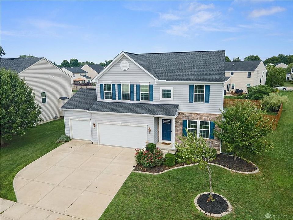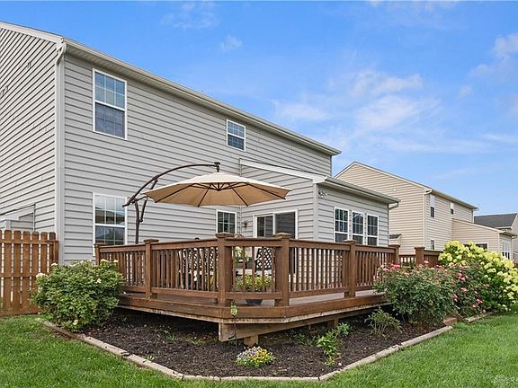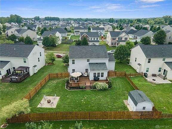Meticulously maintained, two-story, 4 bedroom 3 car garage home w/ a finished basement and fenced in backyard. This residence has a desirable open floor plan on the entry level that includes a massive kitchen w/42" cabinets, pantry and center island, morning room and great room. Spacious owner's suite has WIC, dedicated bathroom w/ shower and soaker tub. Guest bedrooms are great size and have large closets. Second level laundry. Entertain family and friends on the deck and easily store a lawn mower in the backyard 10x12 storage shed. Close to WPAFB, I-70 and I-675 and Oakes Quarry Park and Bath Township Park. Approximately 10 minutes to Yellow Springs.