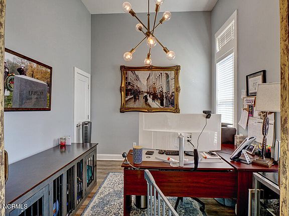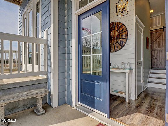 This custom home was built for maximizing its beautiful surroundings, there are water views from bedrooms, porches, balconies, and the Crow's Nest. Entering the home from the front door, the private office to the right provides an excellent place to work in peace and comfort. From the office you proceed up the steps, passing by the large pantry into the beautifully appointed kitchen and dining room. Through the living room you can access the screen porch or continue to the master suite which connects back to the front hallway through the master closet and laundry room. On the second floor there are three more bedrooms, a flex room and second master suite or in-law quarters with kitchenette. Two of the bedrooms have ensuite toilets and sinks with a shared jack and jill bathing area. The flex room looks out onto the pond and is lined with large windows. Up in the Crow's Nest you can keep an eye on the ICW, watch the beautiful weather roll through, and relax in this solidly built home.