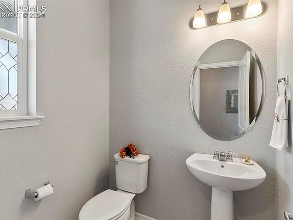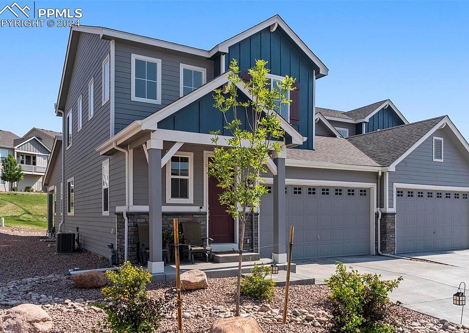 Low Maintenance, Main Level Living, All Updated & Clean. Here is your rare opportunity to own a nearly new home in Rockrimmon. Stunning, updated, clean, and move in ready. This home features main level living with a wide open floor plan. The main level boasts a conveniently located 1/2 bath as well as the primary bedroom with attached en-suite. En-suite is complete with granite counter tops, double sink, glass shower with white subway tile surround and built in seat, tile floor, as well as an attached walk in closet. The open floor plan allows for community between the kitchen, living room, and dining area with a walk out to the covered patio. Living space has a gas fireplace built in shelving and a luxury ceiling fan/light installed. The kitchen is beautiful with double ovens, classic white cabinetry, granite island/bar top, gas cooktop, and granite countertops. The patio is very spacious and comes with a custom retractable privacy/sunshade awning installed. Privacy vinyl has also been placed on the back door. The laundry and garage access is also found on the main floor. Upstairs you are going to find a large open loft space with views of Pikes Peak, 2 additional bedrooms, and a bathroom that works for all with having a double sink area separate from the toilet, shower/tub. Head downstairs and enter a great room full of space. The basement also offers 1 additional bedroom as well as another 3/4 bathroom. Let's talk tech...this house has a ring door camera/security system in place, Aladdin Garage System, digital thermostat, and radon mitigation in place.